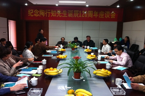 ,纪念陶行知诞辰120周年座谈会在杭州科技职业学院内的杭州市陶行知纪念馆内进行,省、市、区各级陶研会领导和陶研会实验学校的负责人参加了本次座谈会。