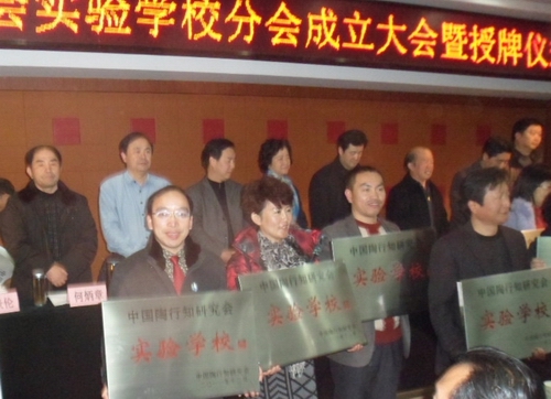 教授宣读了中陶会实验学校的授牌决定。根据中陶会的年度工作计划,于今年上半年启动了中陶会新一轮的实验学校申报评审工作。经过各省市陶研会推荐、中陶会组织考察、评估,最后确定全国120所学校被批准为中陶会实验学校,目前,杭州市只有四所学校(幼儿园)被授予此荣誉称号。